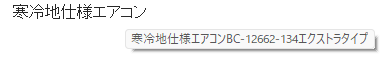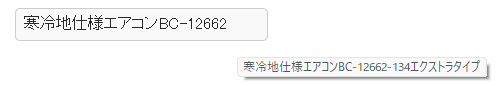 このようなフィールドがあるとします。実は今表示されていない内容はすべてではなく「寒冷地仕様エアコンBC-12662-134エクストラタイプ」というデータが入力されています。クリックすれば、もちろん内容がすべて見られますが、ポップアップヘルプを設定しておくと、クリックしなくても、カーソルを合わせただけで内容の全体を確認できます。