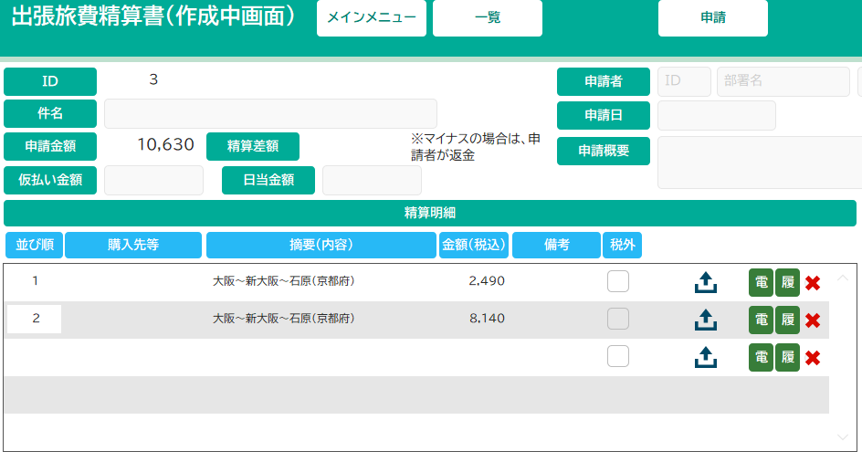 ポータルがよく使われるのは、この画面のように明細を表示する部分です。この画面では、経費精算の経費の部分です。