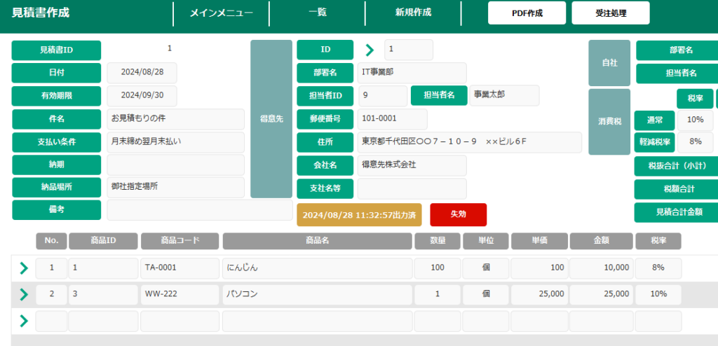 また、このように見積書、請求書、納品書といった帳票類、帳簿類などにもよく使われます。